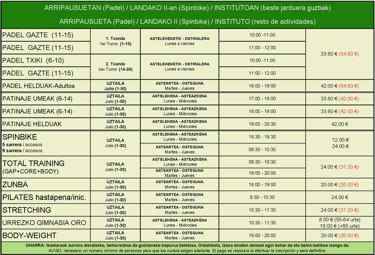 Kirol Jarduerak eta Ikastaroak
